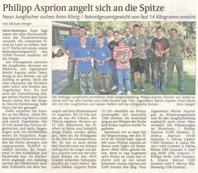 Neuer Fischerkönig wurde Gewässerwart Daniel Panczyk Der Dettinger Fischereiverein hat seine Fangsaison 2015 mit einem erfolgreichen Abfisc