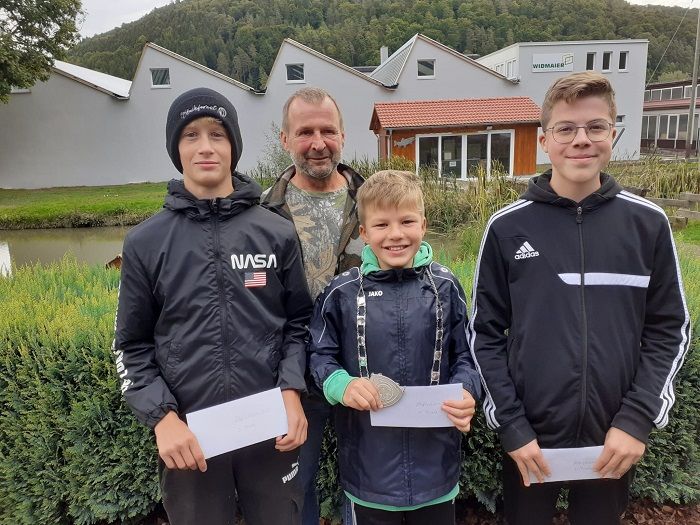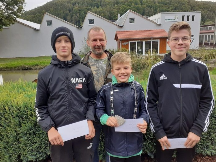 Patz 1 Wekkeli Niklas mit einer Barbe von 3.865 gr. Platz 2 Wekkeli Ben mit einer Barbe von 2.930 gr. Patz 3 Wehle Emerson 1 Bachforelle
