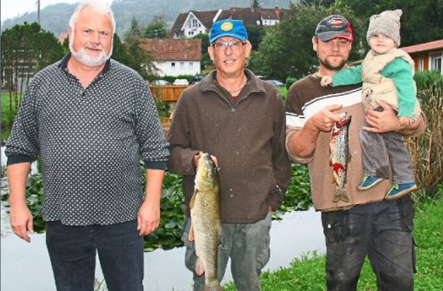 Beim Hegefischen am Neckar zog Wolfgang Kittel (Mitte) den schwersten Fisch des Tages an Land und ist somit Dettingens neuer Fischerkönig. Auf den Plätzen zwei und drei kamen Gotthard Hartmann und Vanessa Asprion.